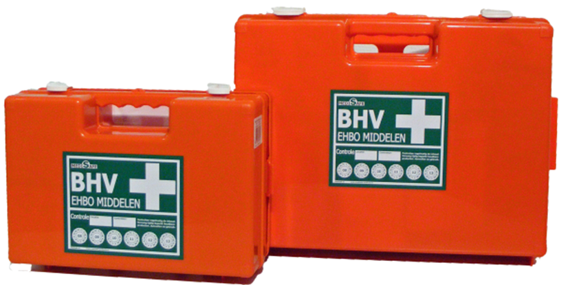 BHV PLUS verbandkoffer, Norm BHV 2016 + industrie in oranje Multimedi koffer met wandhouder afm 31x21x13 cm
