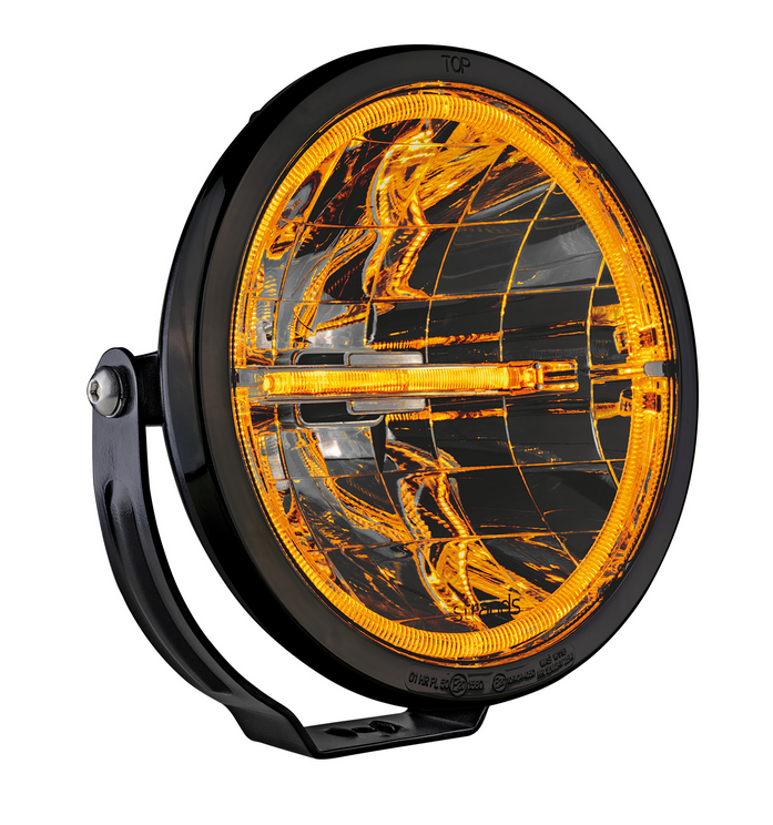 AMBASSADOR DARK KNIGHT 9″ LED VERSTRALER DONKERE LENS + WIT/ORANJE LED STANDLICHT RING/STREEP 67W, DIA 230,5X132MM, EMC ECE R10